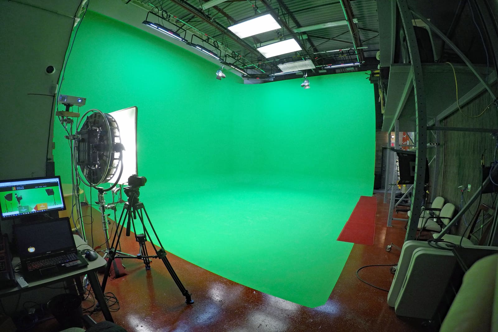 We are a boutique studio focused on efficient production setup and shooting. The facility is equipped with pre-rigged Creamsource Vortex lighting on motorized pipes, an iPad with Slyyd for light control, and a pre-lit greenscreen. Essential grip gear is provided so you only need to bring your camera, and sound equipment to start your shoot .